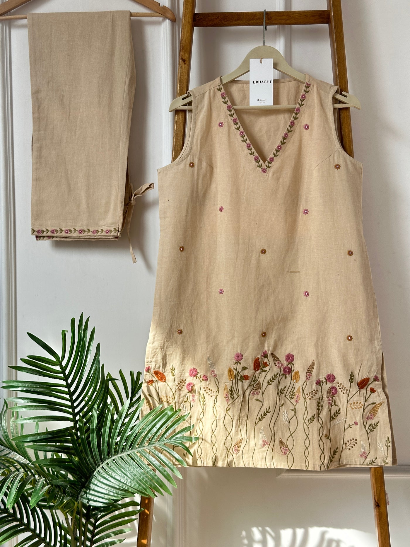 A celebration of effortless elegance, the Ivory Meadow Embroidered Cotton Kurti Set is crafted from breathable pure cotton and adorned with delicate floral embroidery that beautifully blooms along the hemline. Inspired by wild meadow florals, the intricate threadwork brings a soft artistic charm to the minimal silhouette.
